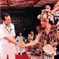 PRIME MINISTER DATUK SERI DR. MAHATIR CONGRATULATING, TUSAU AT SARAWAK CULTURAL VILLAGE (1989)